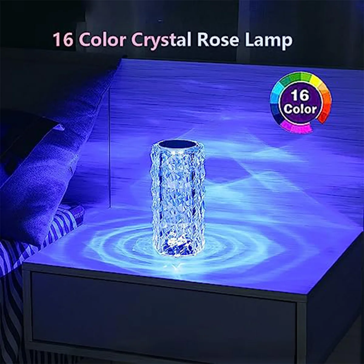 Apresenta uma impressionante projeção de padrão de rosa 3D que cria um efeito visual cativante nas superfícies circundantes.A iluminação RGB combinada com a refração cristalina produz uma luxuosa exibição de luz e sombra, melhorando o ambiente artístico e romântico.