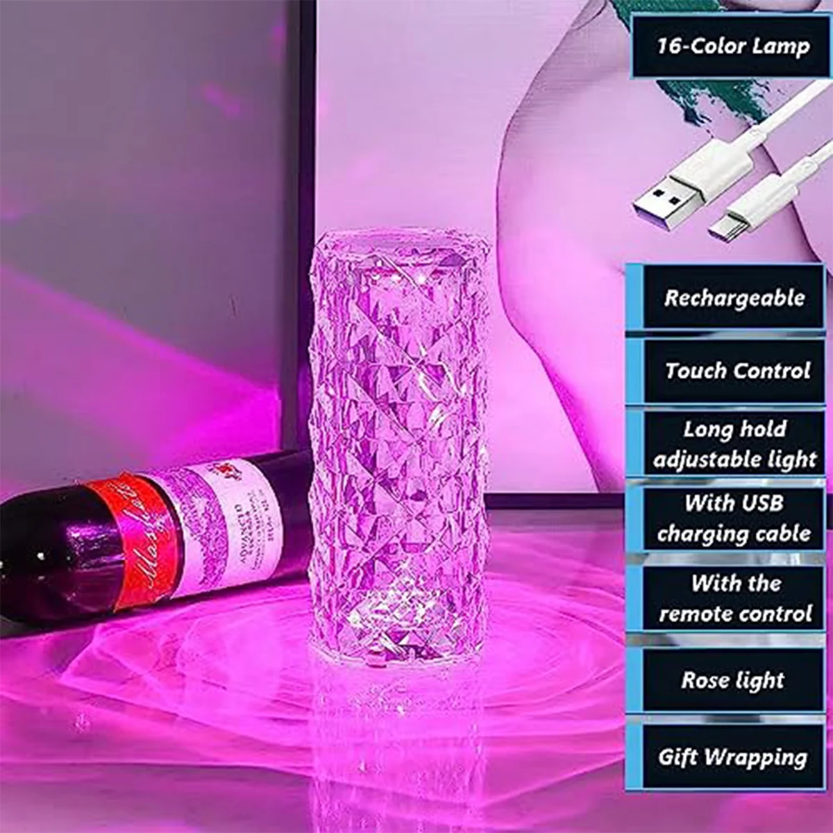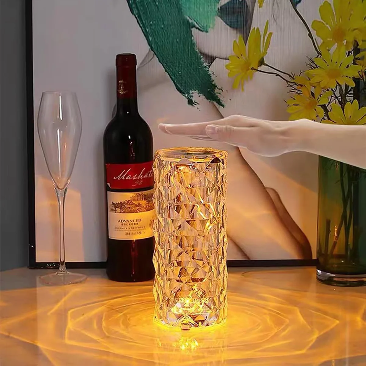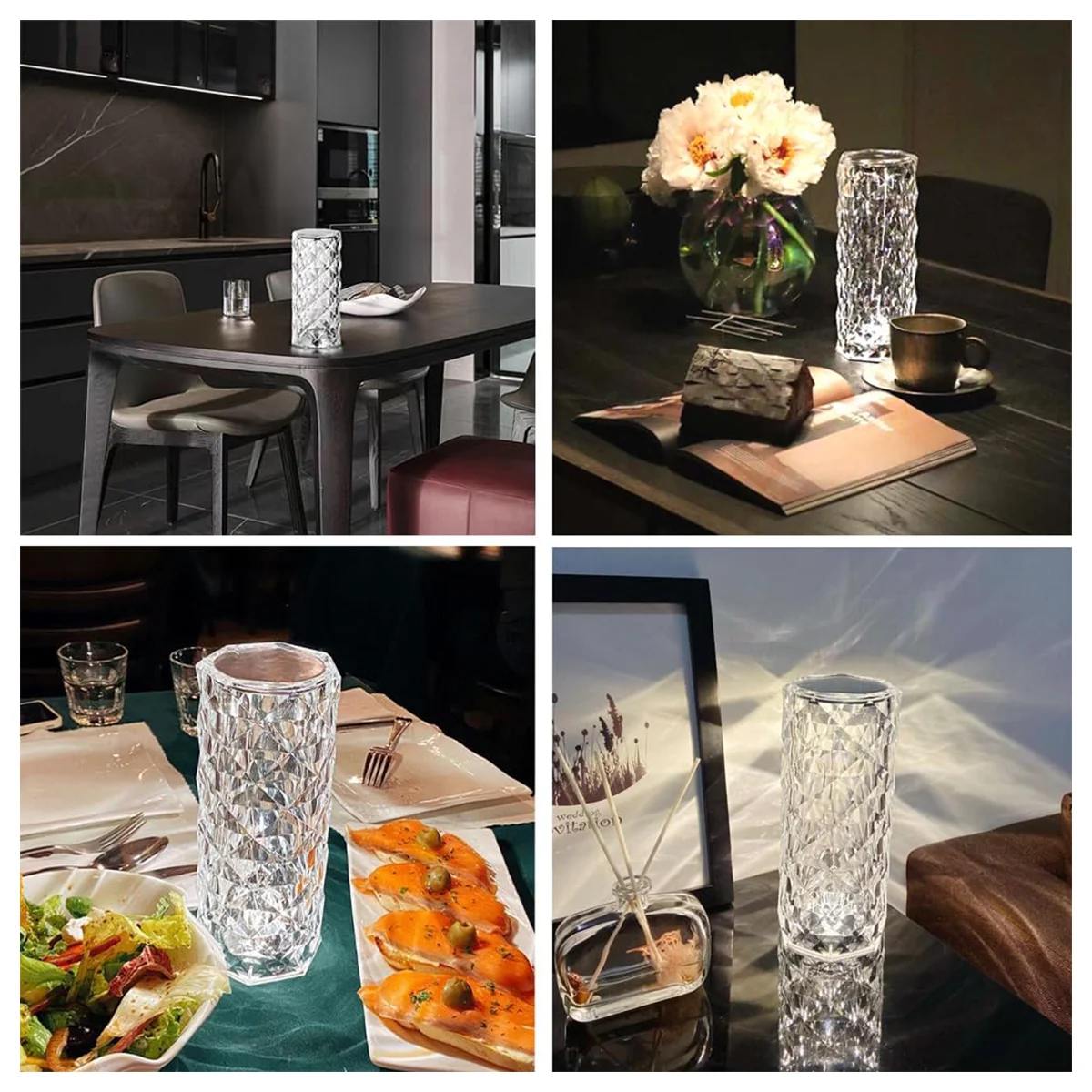 Feito de material acrílico de alta qualidade, este abajur de cristal é durável e visualmente deslumbrante.A superfície de diamante cortada com precisão reflete a luz lindamente, apresentando acabamento fino e uma aparência elegante de cristal.